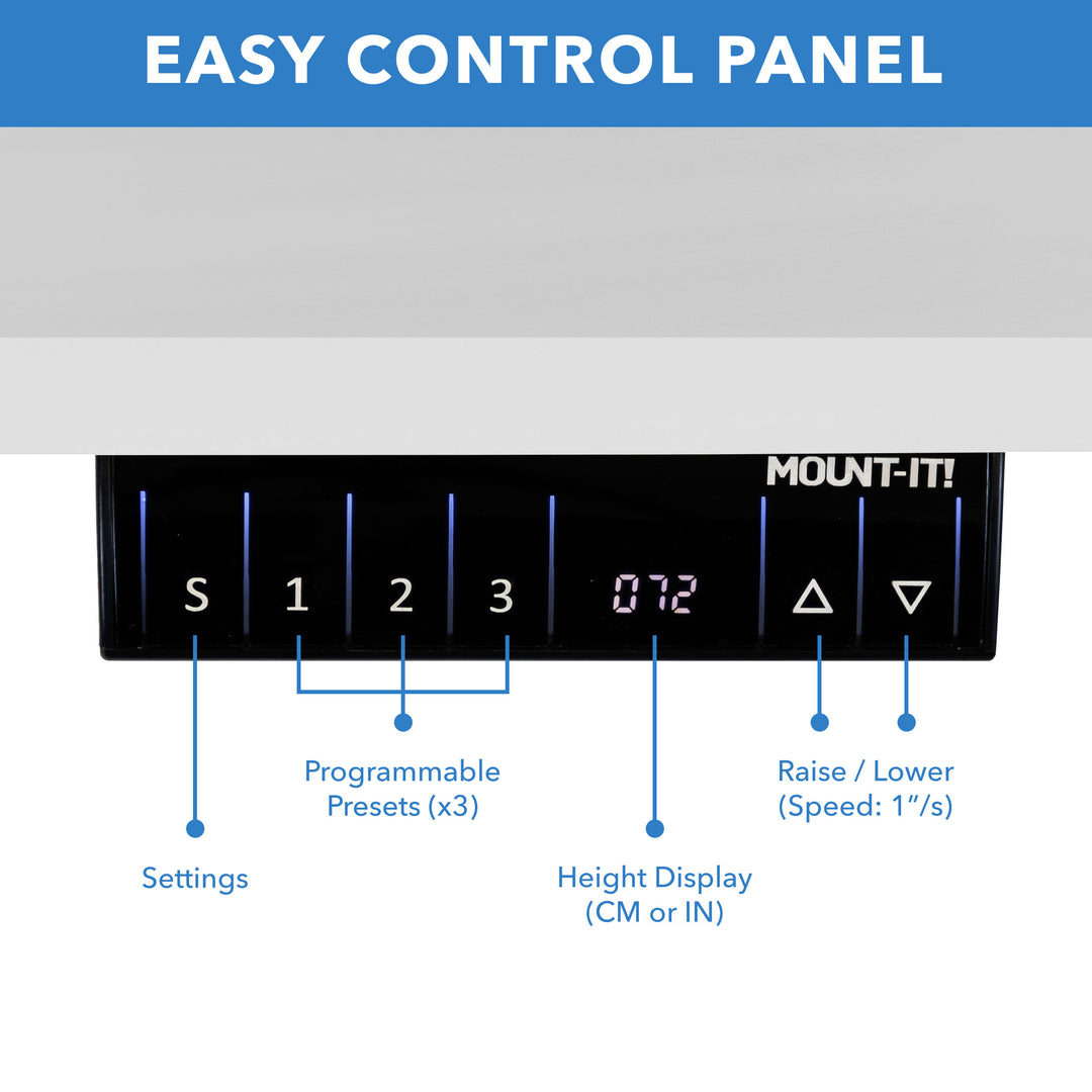 - Easy-to-use touch control panel with 3 memory settings for your preferred sitting and standing heights