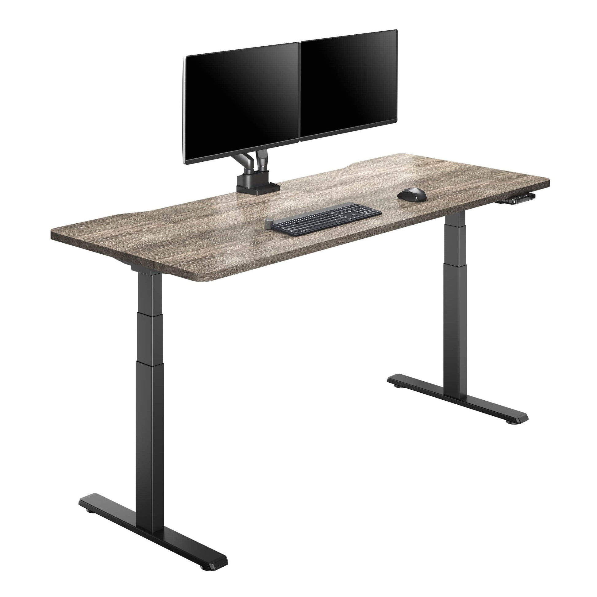 The Gray Wood-Adjustable Electric Standing Desk with Black Legs.