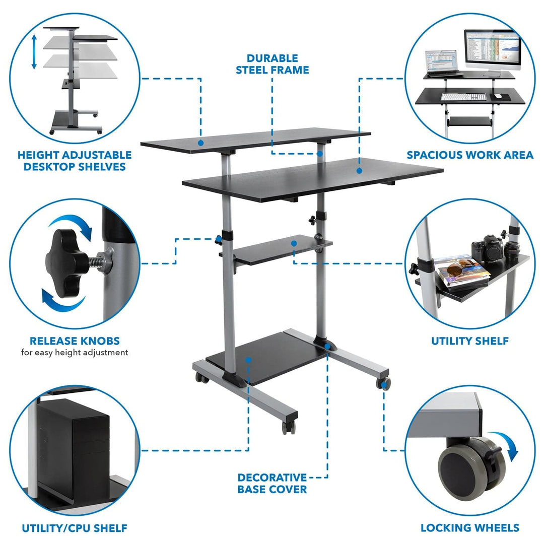 Mount It - Height Adjustable Rolling Stand up Desk MI-7970