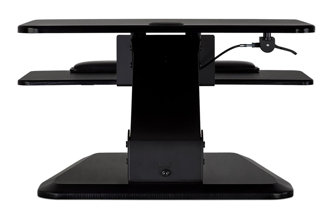 The MI-7916 sit-stand desk converter will help you improve circulation by leaving you more alert and productive. Easy to use, raise and lower the desk with the lever, and the gas spring mechanism will raise it to your desired height. This desk converter has plenty of space for your monitor and desk accessories—height-adjustable between 6.5" to 18" from the desktop to find the perfect height. Cable management insert helps you keep your office tidy.