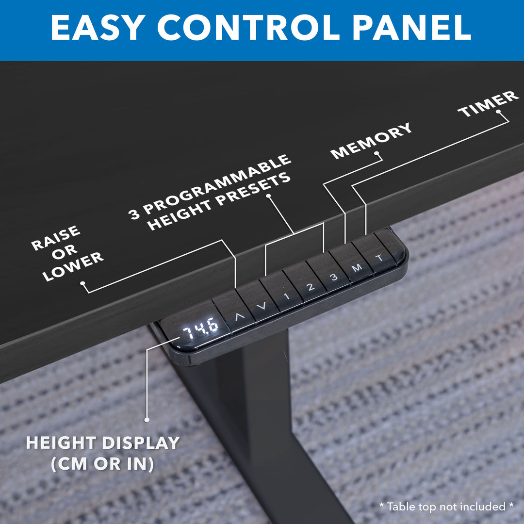 - Easy-to-use digital control panel with 3 programmable memory settings for your preferred sitting and standing heights